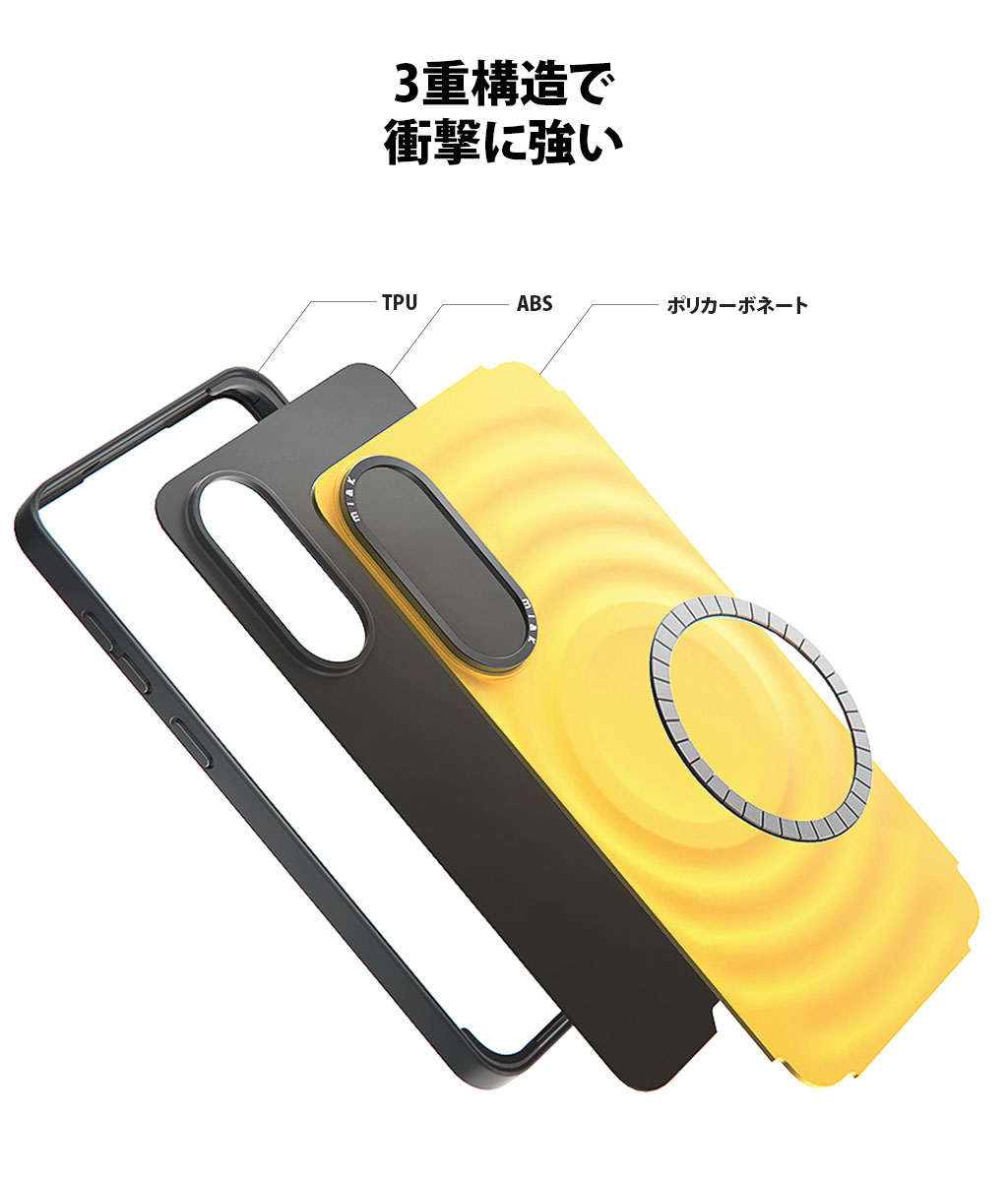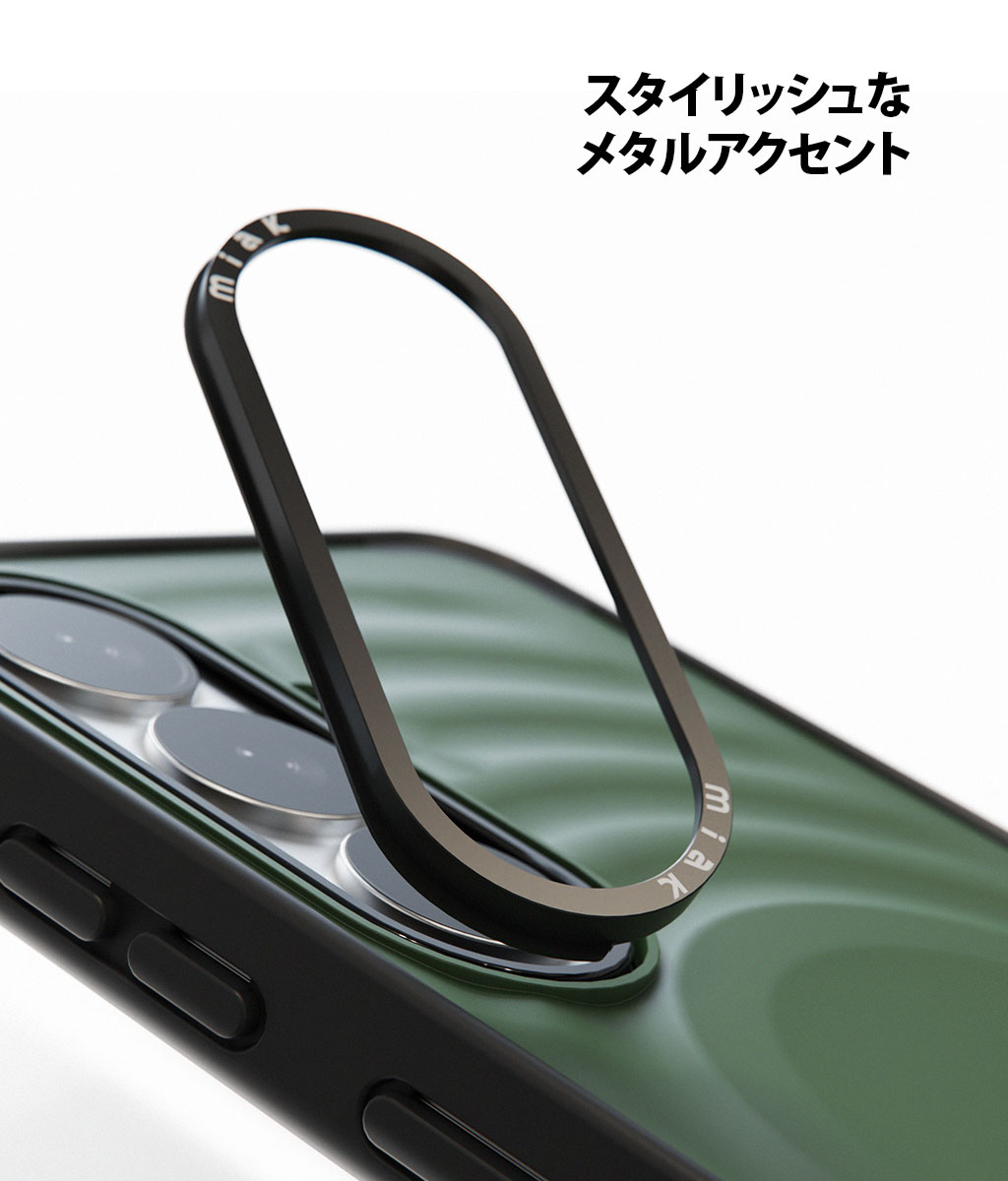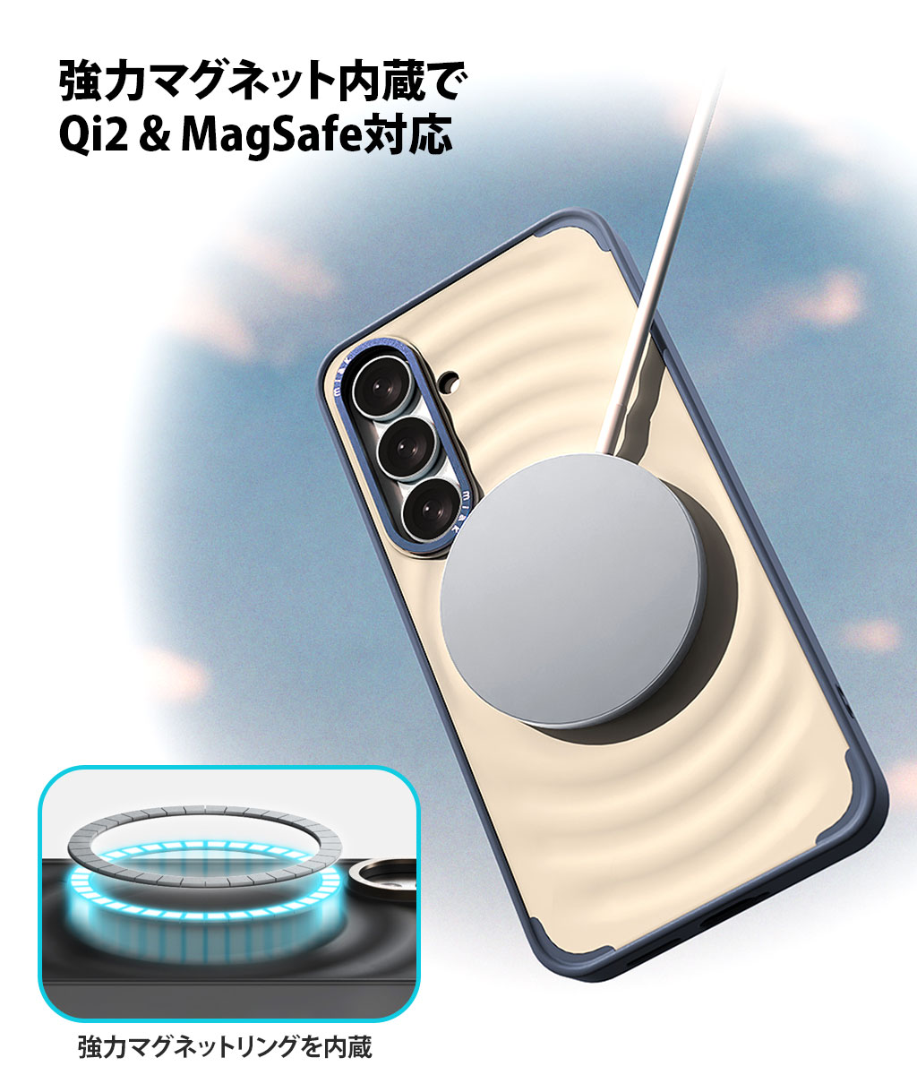 強力マグネットリングを内蔵し、Qi2やMagSafe対応アクセサリーを快適に使用可能。