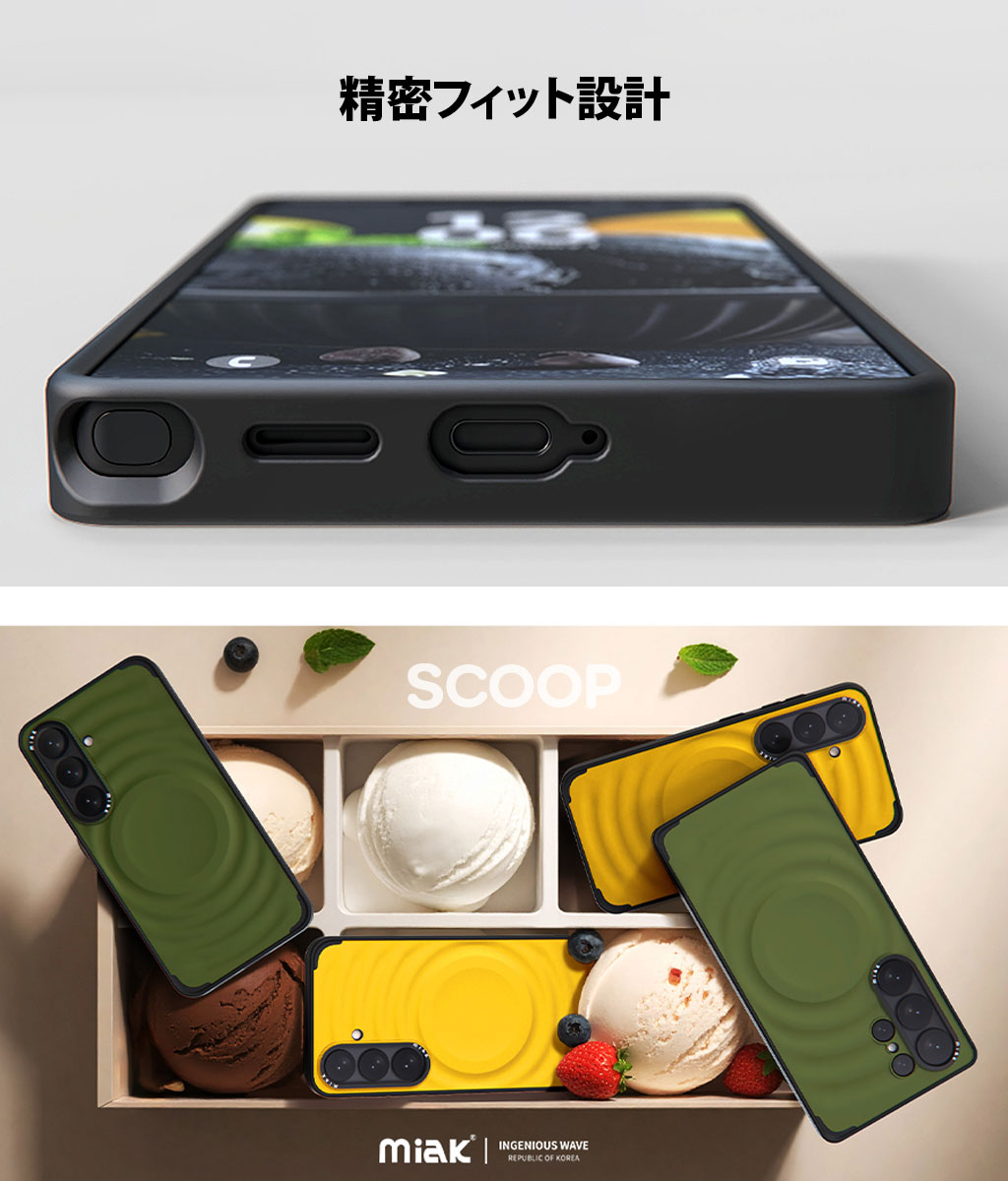「SCOOP Qi2対応マグネットケース」は、アイスクリームをモチーフにした遊び心あふれる立体デザインが目を引く、おしゃれなマグネットケースです。見た目のかわいさだけでなく、日常使いにうれしい実用性も兼ね備えています。